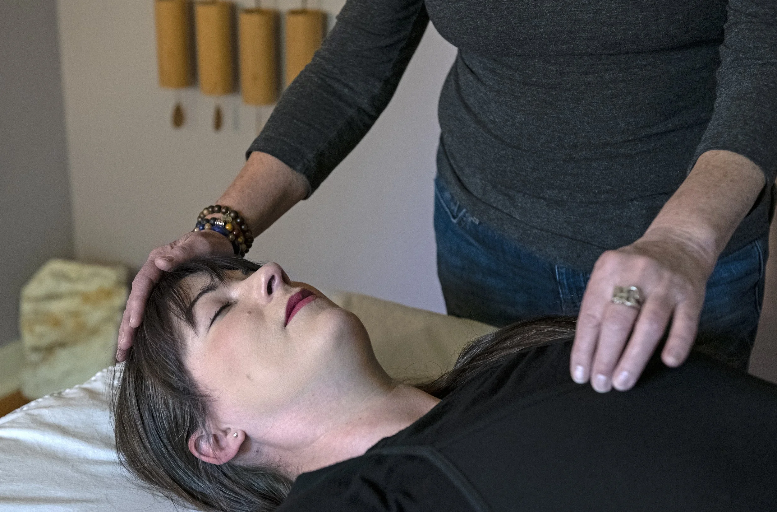 My energy studio provides a private, relaxing sanctuary for healing to begin. In-person sessions take place on a massage table, fully clothed.
